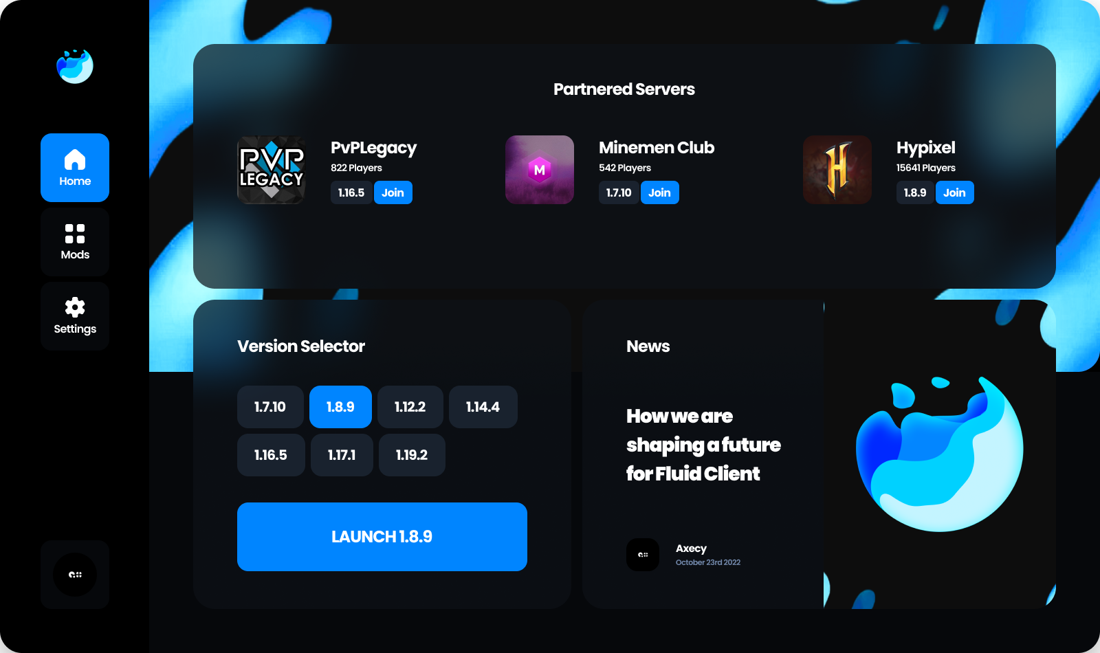 Fluid Client is a Minecraft client that is designed to be lightweight, fast and easy to use.